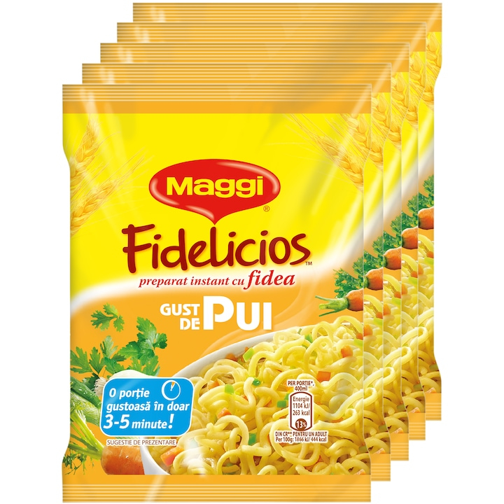 Preparat instant cu fidea si gust de pui - Fidea. A se pastra la loc uscat si racoros, ferit de razele soarelui si de inghet.